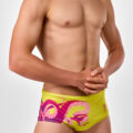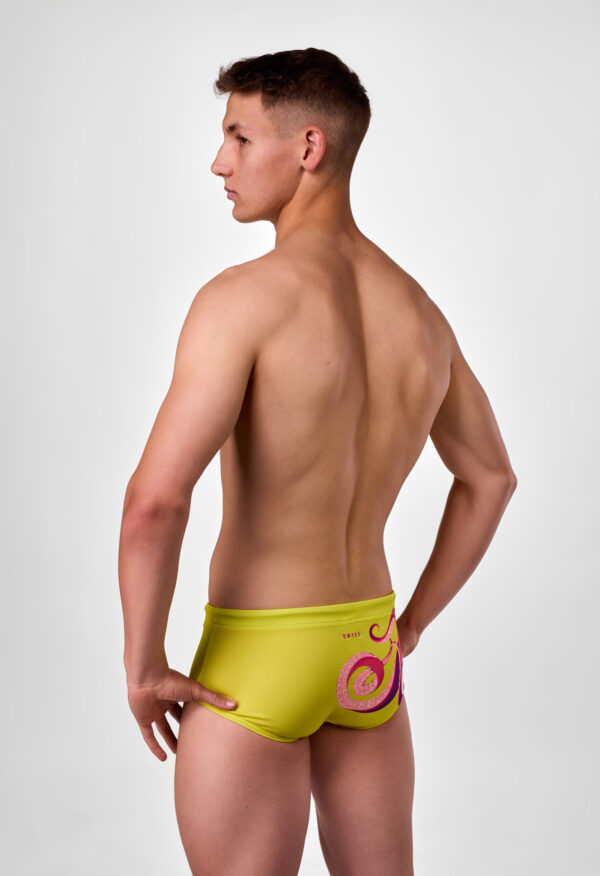 Bokserki pływackie męskie SWEEP Aqua Kraken wyróżniają się oryginalnym wzorem, przedstawiającym różowe macki ośmiornicy na intensywnie żółtym tle. Stanowią one wyjątkowe połączenie kreatywności, wysokiej jakości i wygody, dzięki czemu są nie tylko funkcjonalnym elementem garderoby, ale również małym dziełem sztuki. Idealnie nadają się zarówno na trening na basenie, jak i na otwarte wody czy plażę.